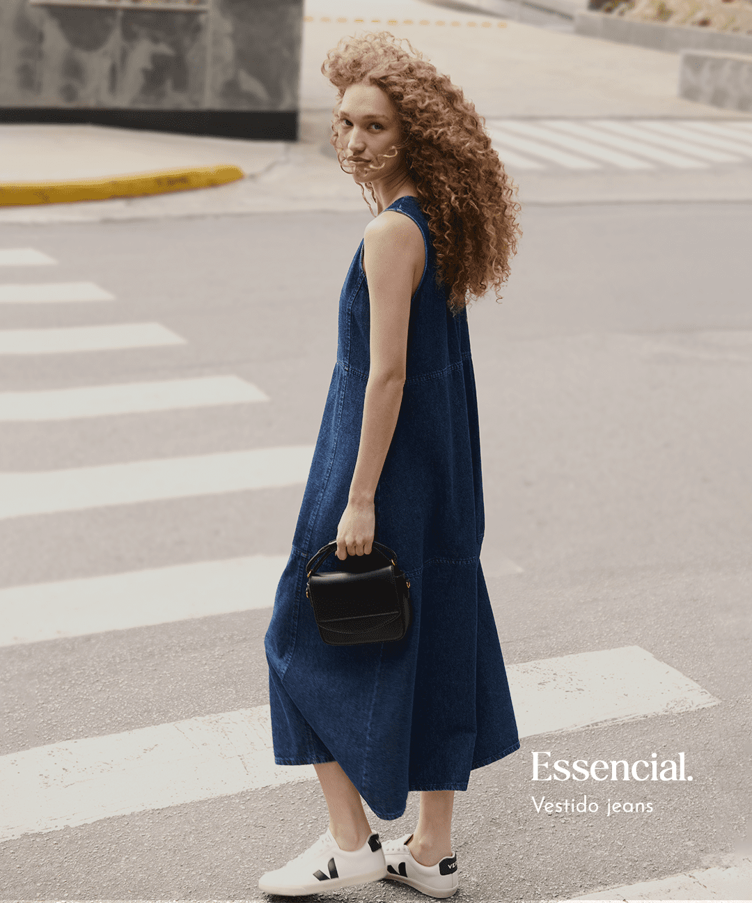 O vestido jeans que cruza décadas se renova no shape estruturado nesta nova coleção. Os recortes pespontados dão ainda mais personalidade. Quem busca praticidade tem em mãos uma peça essencial para montar propostas urbanas.