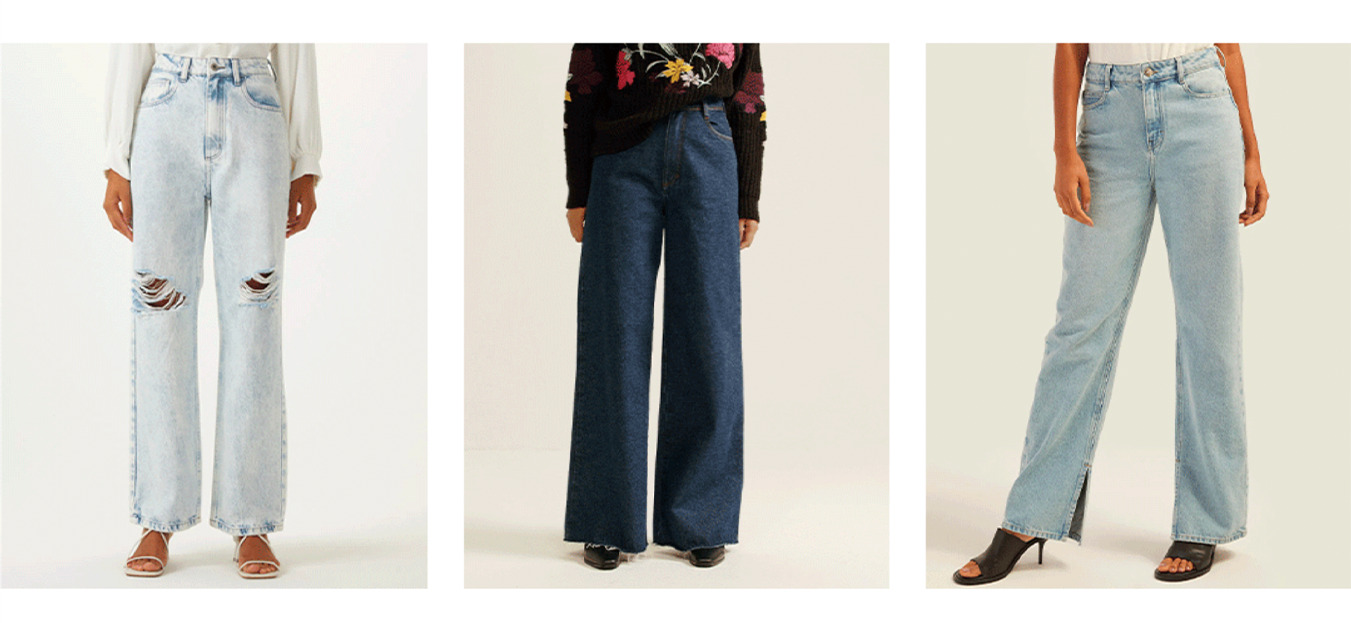 A Jeans Wide é uma de nossas favoritas e arriscamos dizer que ela vai bem em qualquer guarda-roupa com uma modelagem ampla que permite que você se movimente sem medo.