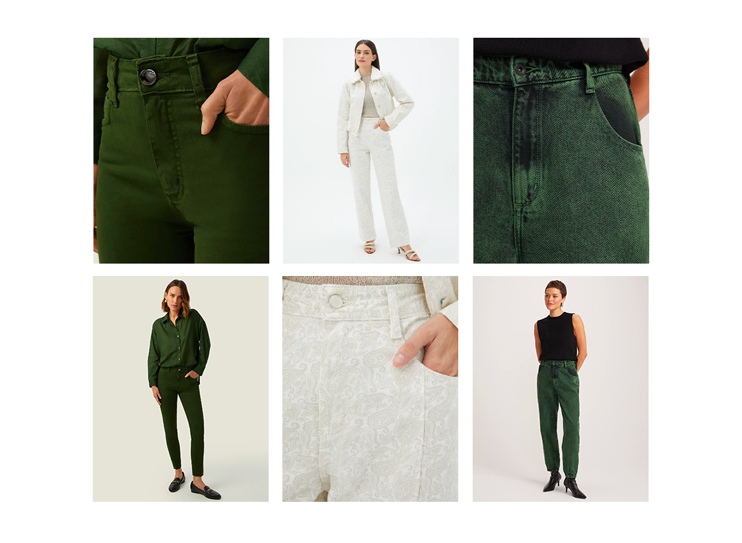 Agora falando dos favoritos de muita gente, as estampas e cores chegam nos jeans da Shoulder para trazer ainda mais personalidade para suas composições. A Calça Color Skinny vem em cinco tons para você escolher e aproveitar essa modelagem clássica em sua cor favorita. Se essas cores ainda não são o suficiente para você, apresentamos a Calça Jeans Baggy Sobretinta nessa lavagem verde única e com um shape extremamente confortável.