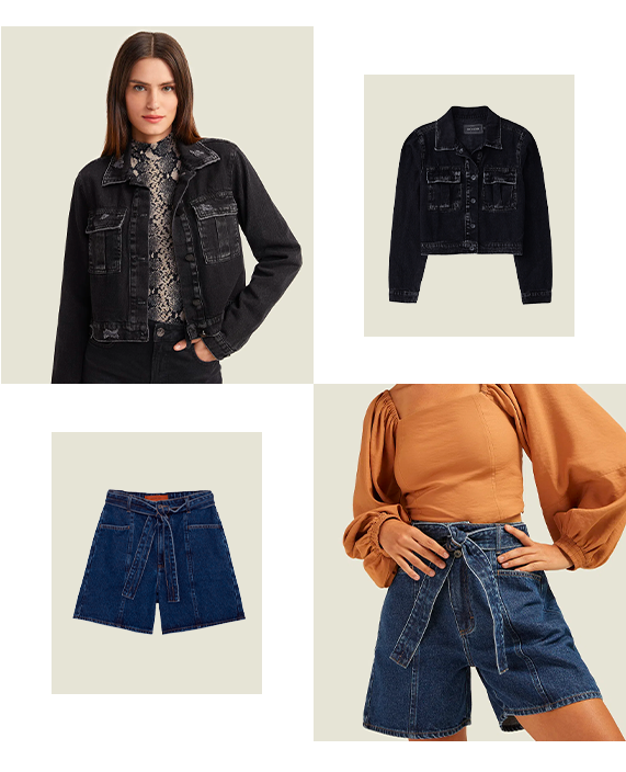 E ainda podemos adicionar uma terceira peça, como a Jaqueta Black Jeans, que é versátil e se encaixa em qualquer estilo.