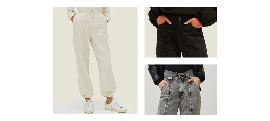Já pensou em ver uma calça jeans com modelagem jogger? Ou com acabamento em brilho? Agora você tem essas e mais outras possibilidades!