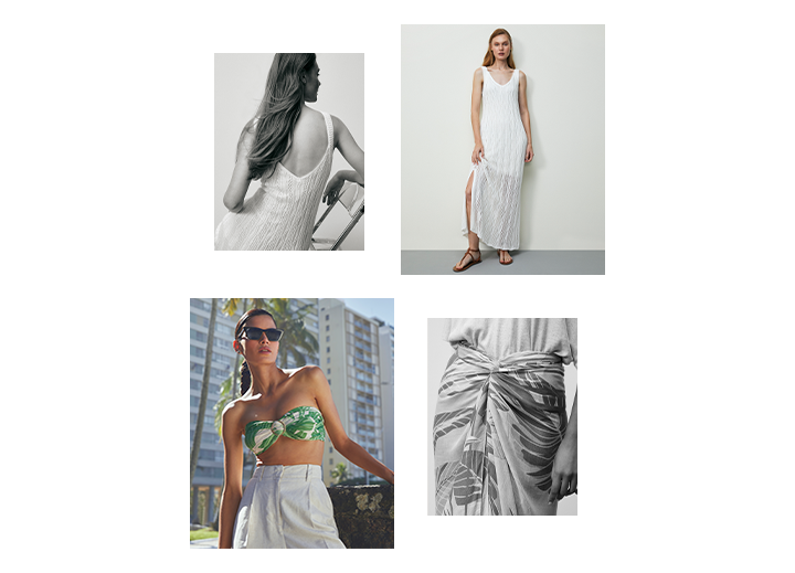 Seguindo esse pensamento, também amamos composições com saídas de praia e cangas. Bem pé na areia, não acha?