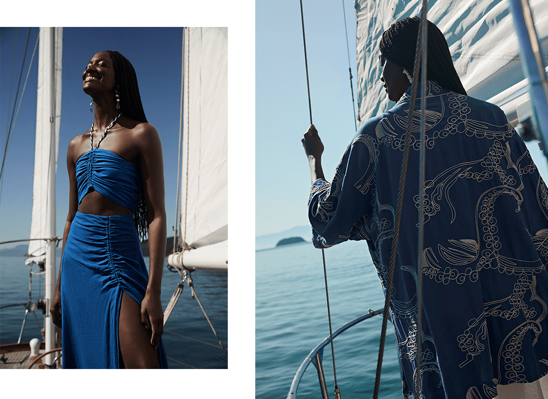 Conforto e sofisticação orientam propostas especiais. Que tal investir em estampas e bordados que remetem ao desejo de estar próximo dessa imensidão azul? As modelagens fluidas dão ainda mais personalidade aos looks.